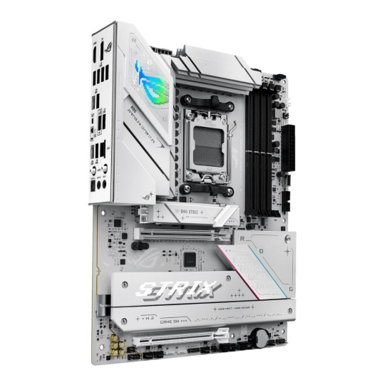 Elevate your build with the ROG Strix B850-A Gaming WiFi. Featuring a sleek white PCB and support for AMD Ryzen™ 9000 Series processors, this motherboard delivers the power and connectivity needed for advanced AI applications. With DDR5 support, full PCIe 5.0 capabilities, USB 20Gbps port, and WiFi 7, it's the ultimate blend of style and performance.