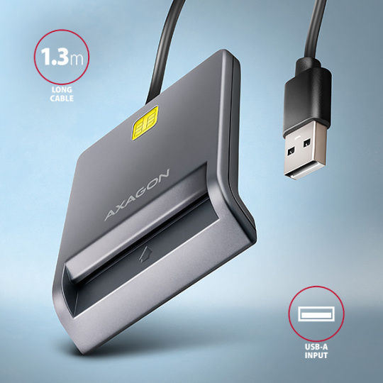 BAZAR - AXAGON CRE-SM3T, USB-A FlatReader čtečka kontaktních karet Smart card (eObčanka), kabel 1.3m - Poškozený obal (K
