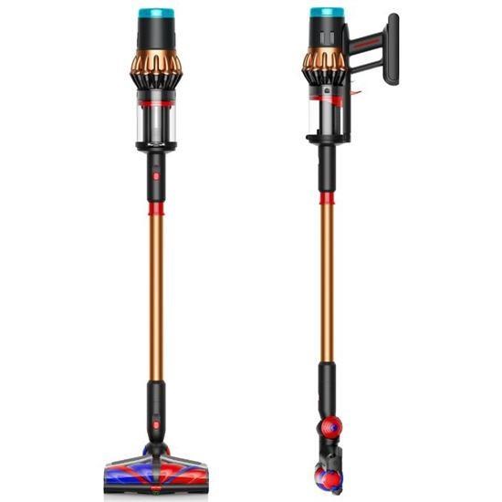 Pro vyšší účinnost pohání jediný ve středu hubice umístěny 100wattový bezkomutátorový stejnosměrný motor oba kónické kartáče současně. - LED osvětlení pro detekci prachu