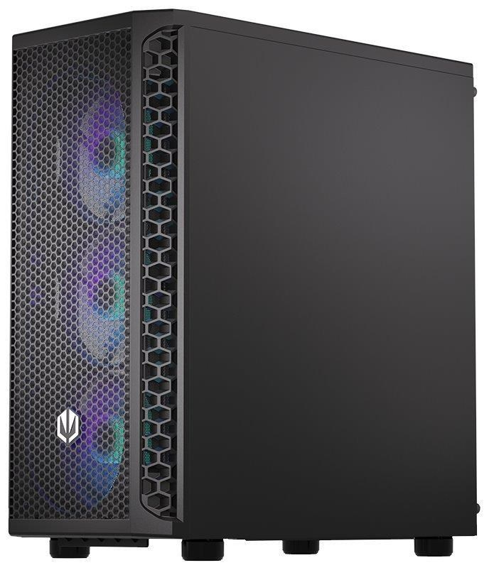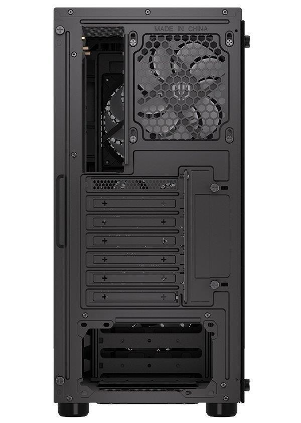 Skříň formátu Middle Tower s průhlednou bočnicí z tvrzeného skla nabízí dvě 2,5" pozice pro SSD disky a dvě 3,5" pozice pro pevné disky. Na horní části se nachází dva USB 3.0 porty, sluchátkový výstup a audio vstup pro mikrofon. Vybavena je čtyřmi 120 mm ventilátory s ARGB podsvícením, které spolu s perforovaným čelním panelem zajišťují dostatečné proudění vzduchu. Důmyslné řešení umožňuje pohodlné umístění až 360 mm dlouhého výměníku vodního chlazení na přední straně. Ve skříni je dostatek prostoru pro chladič CPU do výšky až 161 mm a grafickou kartu o délce až 350 mm. Dodávána je bez zdroje. Součástí je také sada prachových filtrů.