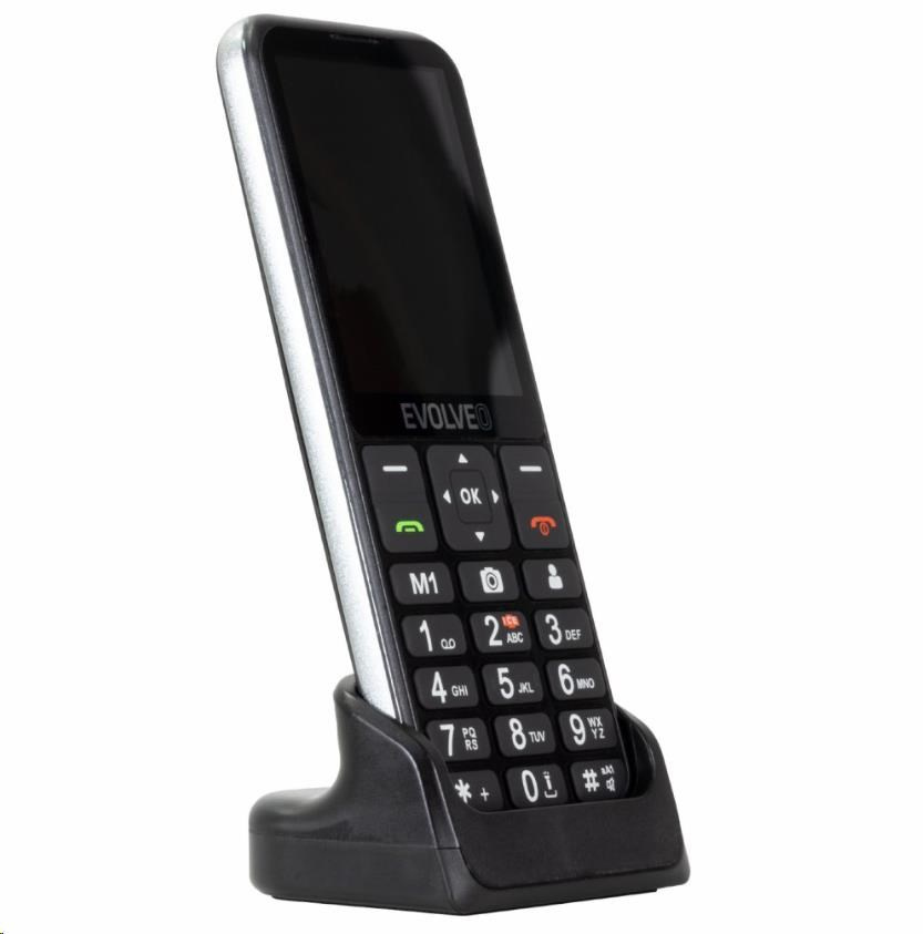EVOLVEO EasyPhone LT, mobilní telefon pro seniory s nabíjecím stojánkem (černá barva)