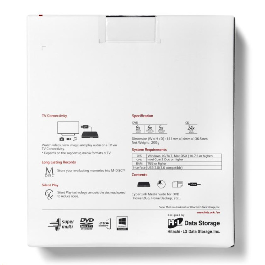 BAZAR - HITACHI LG - externí mechanika DVD-W/CD-RW/DVD±R/±RW/RAM GP57ES40, Slim, Silver, box+SW - Poškozený obal (Komple