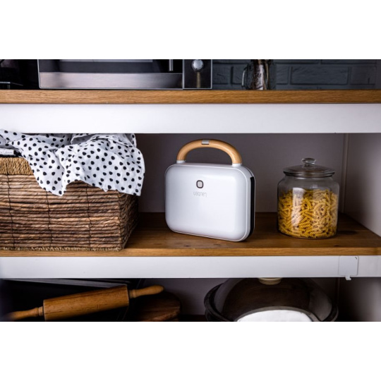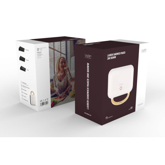 Nemáte zrovna čas na přípravu teplé večeře nebo vydatné snídaně? S toastovačem Lauben zvládnete obojí během pár minut. Klasickými toasty se šunkou a sýrem potěšíte každé dítě, rozhodně u nich ale nemusíte skončit. Sendvičovač Lauben si díky 3 sadám plotýnek poradí i se snídaňovou vaflí nebo grilováním masa. Nahřejete ho během chvilky a jídlo budete mít hotové dříve, než se vám podaří svolat všechny ke stolu. Potěší vás i snadná údržba a skladování. Sendvičovač vertikálně uložíte do kuchyňské skříňky a vyměnitelné plotýnky lze jednoduše otřít hladkou stranou houbičky na nádobí. Díky integrovaným protiskluzovým nožkám zůstane během přípravy jídla na místě. Mysleli jsme i na bezpečný provoz. Cool Touch držadlo zajistí, že se nikdy nespálíte a provoz indikuje LED kontrolka na povrchu přístroje. Přidanou hodnotou je prémiový design značky Lauben. Trendy off white provedení s dřevěným dekorem se totiž skvěle hodí do každé kuchyně.