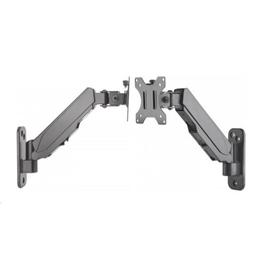 The Manhattan Universal Gas Spring Monitor Wall Mount offers a single-jointed gas-spring arm to securely hold one 17" to 32" TV or monitor. This mount's gas spring promotes easy movement of the monitor or TV to a more comfortable viewing angle with the lightest touch. Designed to be installed on the wall to give back much-needed desktop real estate, the Manhattan Universal Gas Spring Monitor Wall Mount provides more flexibility, reach, and overall enjoyment of whatever task is at hand.