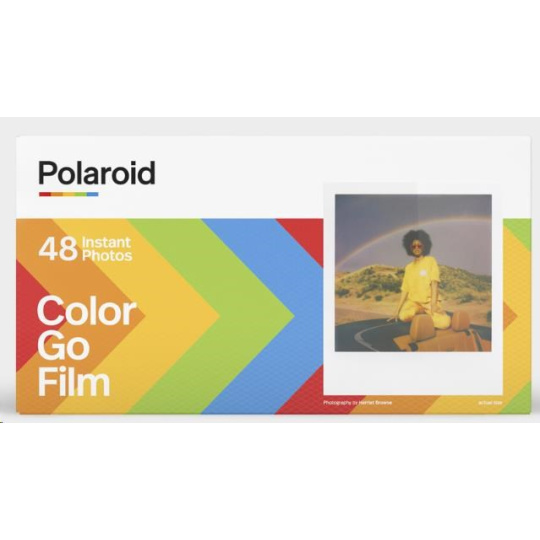 Go Film Multipack 48 photos Going, going, gone. Trojité balení filmu Polaroid Go, aby vám na cestách nedošel. V balení je 48 malých barevných fotografií k okamžitému zachycení velkých nápadů. Každé balení obsahuje 48 barevných instantních fotografií s lesklým bílým rámečkem připravených pro světlo světa. Exkluzivně pro použití s fotoaparáty Polaroid Go. Velikost: 66,6 × 53,9 mm / velikost snímku: 47 × 46 mm Bílý rámeček ASA 640 Vyvíjení fotografie do 10–15 minut Nejlépe uchovávat v chladničce Expozice 48 Velikost filmu 46x47mm, 1,85x1,81” Typ filmu Instantní ISO filmu 640.