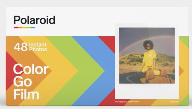 Go Film Multipack 48 photos Going, going, gone. Trojité balení filmu Polaroid Go, aby vám na cestách nedošel. V balení je 48 malých barevných fotografií k okamžitému zachycení velkých nápadů. Každé balení obsahuje 48 barevných instantních fotografií s lesklým bílým rámečkem připravených pro světlo světa. Exkluzivně pro použití s fotoaparáty Polaroid Go. Velikost: 66,6 × 53,9 mm / velikost snímku: 47 × 46 mm Bílý rámeček ASA 640 Vyvíjení fotografie do 10–15 minut Nejlépe uchovávat v chladničce Expozice 48 Velikost filmu 46x47mm, 1,85x1,81” Typ filmu Instantní ISO filmu 640.