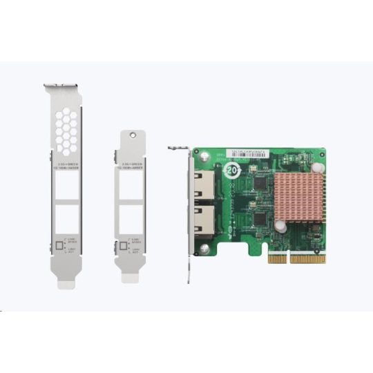 QNAP nabízí firmám a domácím uživatelům různé nákladově efektivní síťové rozšiřující karty, aby snadno upgradovali šířku pásma ve svých QNAP NAS, serverech či počítačích tak, aby vyhovovaly vysokorychlostnímu přenosu dat a aplikacím náročným na šířku pásma. Rozšiřující síťová karta 2,5 GbE poskytuje rychlosti až 2,5 Gb/s. I se stávajícími kabely můžete snadno vylepšit svou síťovou infrastrukturu doma či v kanceláři.