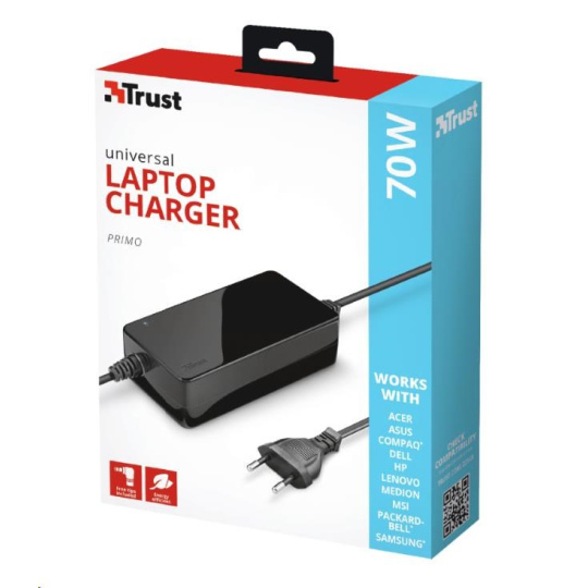 BAZAR - TRUST Univerzální napájecí adaptér pro notebooky Primo 70W-19V Laptop Charger - Poškozený obal (Komplet)