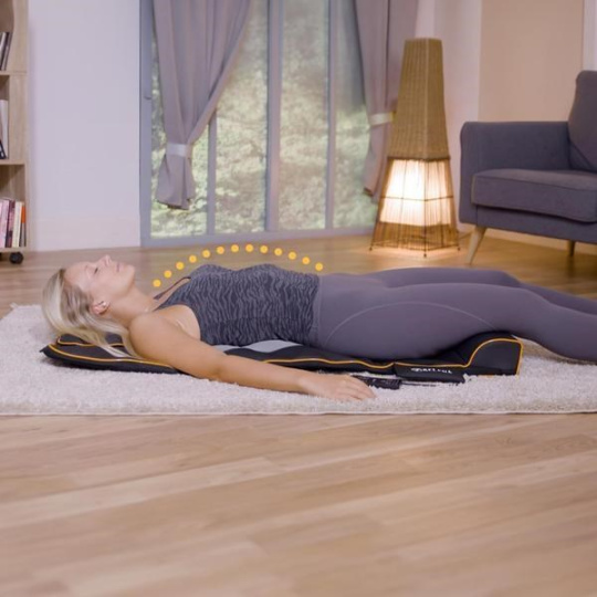Masážní podložka nabízí cvičení a strečink inspirovaný jógou zaměřený na ramena, záda a krk, a to úplně bez námahy. Toto příjemné, intenzivní natahování vede k hlubokému uvolnění a pocitu pohody, jaký jste ještě nikdy nezažili.