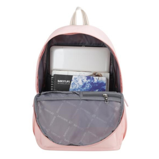 Brašny na notebooky - Brašna BESTLIFE, určená pro vysoké školy. Přihrádka na notebook pojme až 14,1" notebook a je vybavena vnitřním držákem na pero a kapsami s organizérem. V přední části je velká a malá přihrádka na zip a na boku kapsa na láhev s vodou. Vedle ní je prostor pro notebook a další příslušenství.