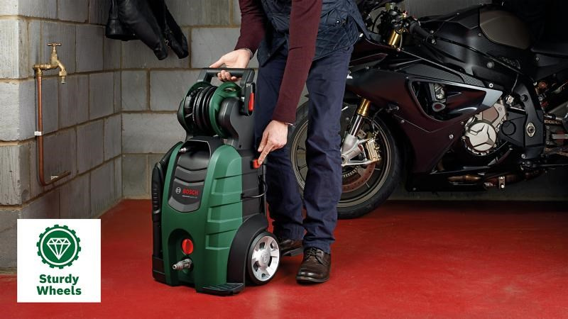 Snadné sestavení díky vysokotlaké navíjecí hadici a rychlopřípojkám push-fit