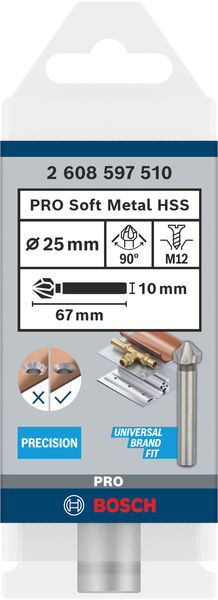 Bosch záhlubník PRO Soft Metal HSS, 25 × 67 mm, M12