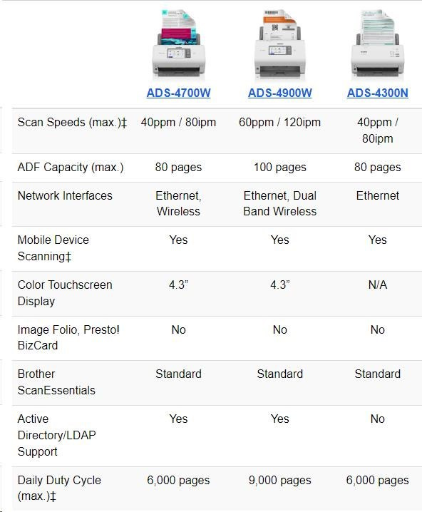 | Included Software‡ | Kofax PaperPort™ SE with OCR for Windows, Brother ScanEssentials for Windows, Brother Mobile Connect for iOS and Android™, Brother iPrint&Scan (desktop) for Windows and Mac® |