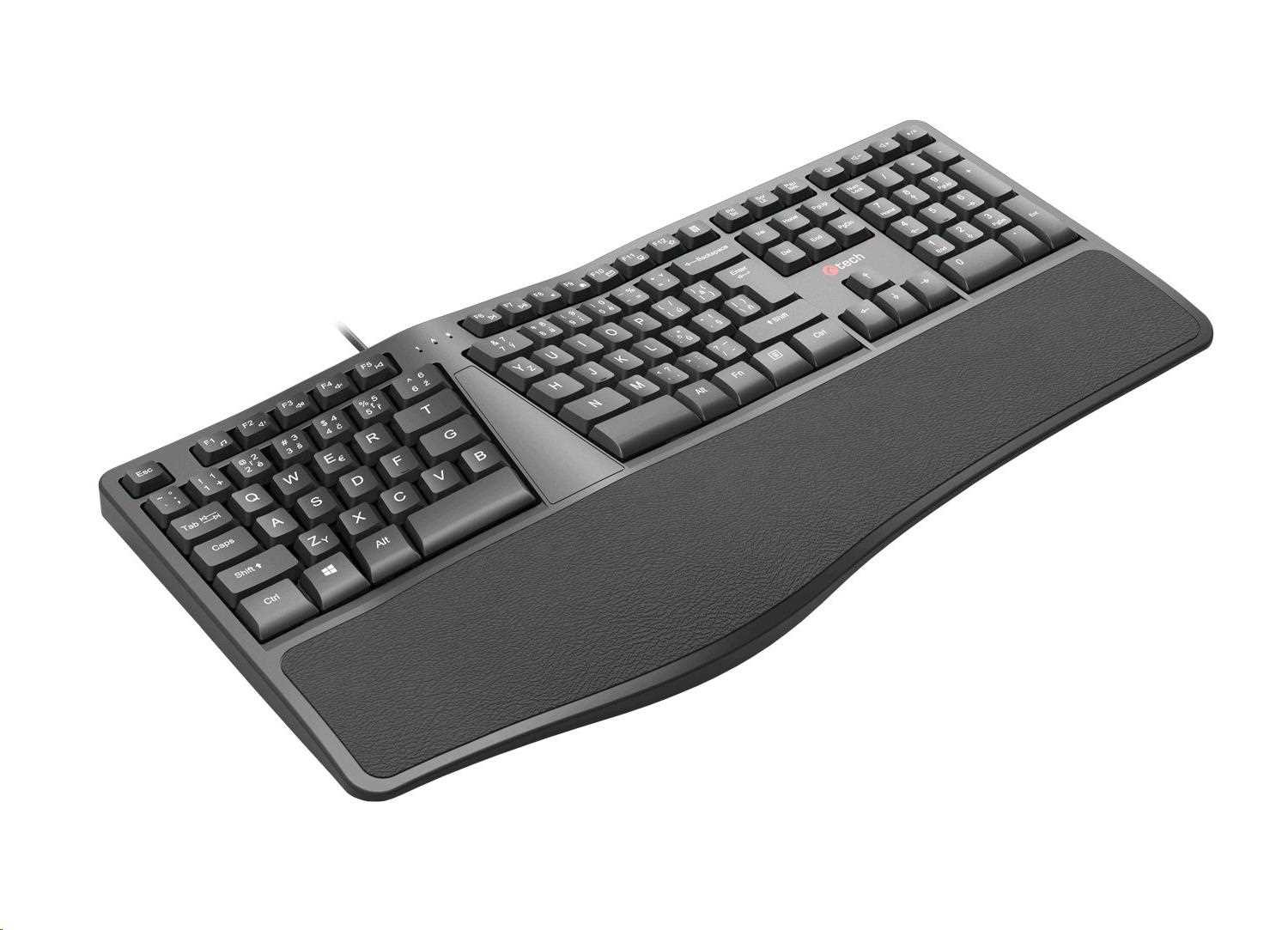 Ergonomická klávesnice C-TECH KB-113E byla navržena pro ty, kteří tráví prací mnoho hodin. Svým speciálním konstrukčním řešením a měkkou předložkou Vám tato klávesnice pomůže minimalizovat Vaši únavu při dlouhé práci. Pomáhá také podobně jako vertikální myš předejít, nebo zmírnit dopady onemocnění karpálního tunelu.