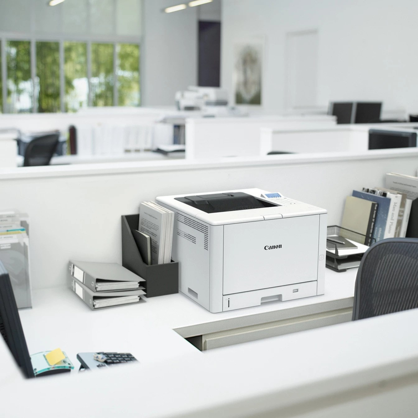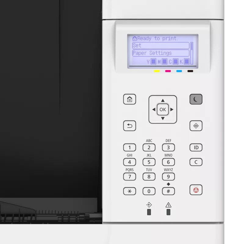 | Hmotnost | Hlavní jednotka: přibližně 37,3 kg Hlavní jednotka + 4× podavač papíru PF-L1 (Paper Feeder PF-L1) + plochý podstavec BA1 (Plain Pedestal BA1): přibližně 104 kg |