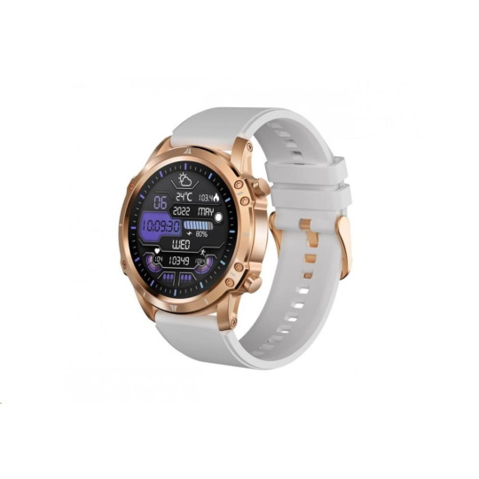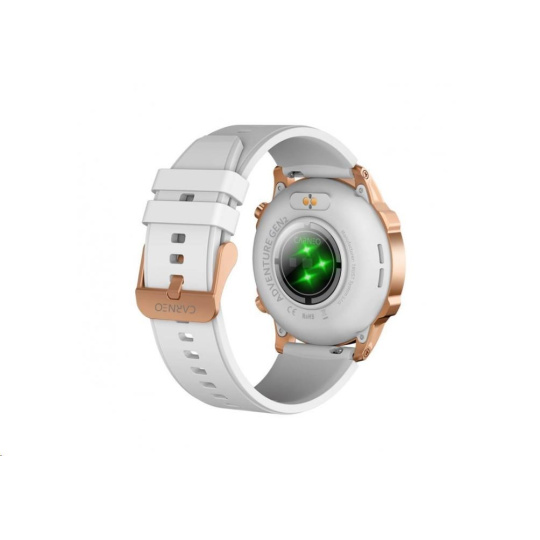 Moderní outdoorové fitness hodinky CARNEO ADVENTURE HR+ druhé generace v zlatorůžové barvě s bílým, na dotek velmi příjemným silikonovým řemínkem a barevným SUPER AMOLED displejem s vysokým jasem a funkcí trvalého zobrazení času monitorují vaši denní aktivitu, úroveň stresu, ale lze je spárovat s mobilním telefonem a upozornit vás na příchozí hovor nebo SMS. Hodinky umožňují telefonovat, aniž byste museli telefon vyndat z tašky, díky vestavěnému mikrofonu a reproduktoru až do vzdálenosti 10 m od telefonu. Jejich bezchybné kovové tělo s nadčasovými outdoorovými křivkami je tak návykové, že je po prvním nošení nebudete chtít sundat ze zápěstí. Extrémně odolné sklo Gorilla glass, ochrání jejich křišťálově čistý displej před poškrábáním.