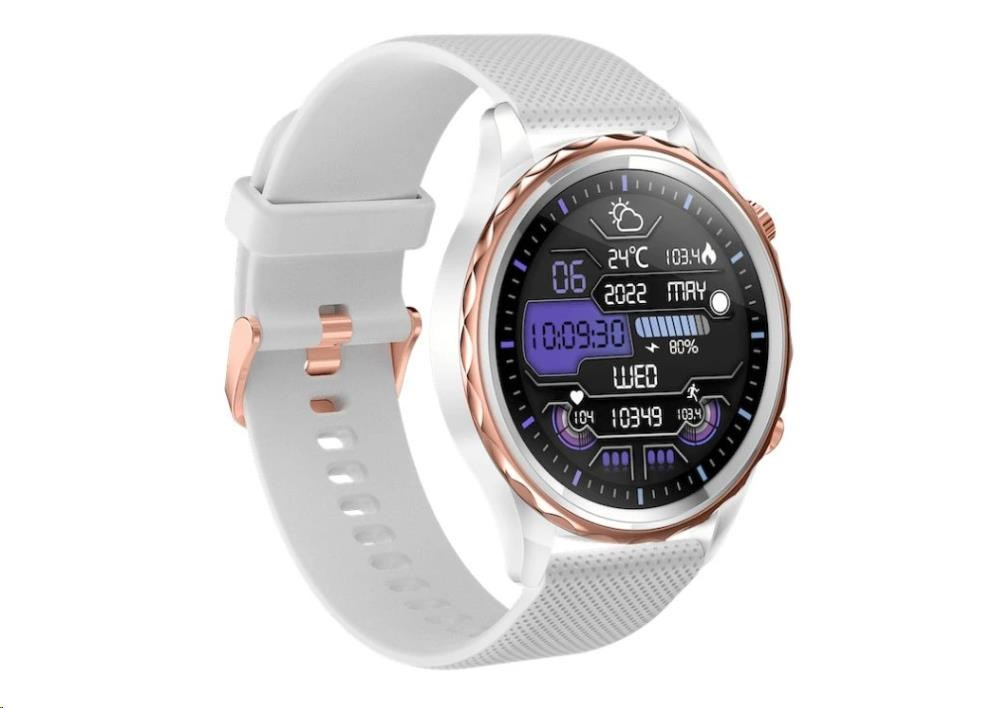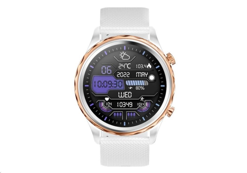Moderní outdoorové fitness chytré hodinky Carneo Queen HR+ v elegantní bílé barvě se stříbrnou korunkou z nerezové oceli mají kulatý barevný displej SUPER AMOLED chráněný tvrdým minerálním sklíčkem. Umožňují měření srdečního tepu, stresu, BMI, ujeté vzdálenosti, monitorování spálených kalorií či kvality spánku. Obsahují 380mAh baterii s výdrží až 5 dní. Podle certifikace IP67 jsou odolné vůči vodě a prachu. Jsou kompatibilní s operačním systémem iOS a Android. Hodinky mají na dotek příjemný silikonový řemínek v černé barvě, který lze vyměnit za řemínek v jiné barvě či kožený nebo kovový a tím pádem změnit hodinkám sportovní vzhled za manažerský. Vkusný outdoorově-luxusní design se snadno kombinuje k obleku či volnočasovému outfitu. Hodinky i aplikace jsou kompletně v češtině, takže si budete jistě spolu dobře rozumět.