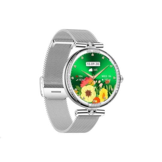 Luxusní dámské fitness hodinky CARNEO Seinna HR+ stříbrné jsou skutečný klenot na ruce každé ženy. Kovové tělo osazené broušenými kameny přitáhne pohledy všech. S barevným SUPER AMOLED displejem monitorují vaši denní aktivitu a lze je spárovat s mobilním telefonem, díky čemuž můžete vyřídit telefonický hovor přímo ze zápěstí, nebo vás upozorní na příchozí hovor, SMS nebo zprávu z aplikací.