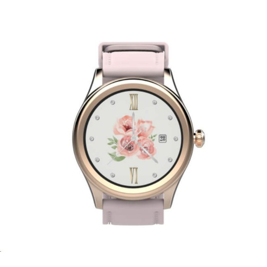Smart hodinky Carneo Prime GTR v elegantním zlatém provedení, barevným dotykovým displejem lze aktivovat jednoduchým otočením ruky. Kromě běžných "smart" funkcí disponují i fitness sportovními funkcemi a to vše v elegantním business look provedení. Rosegold silikonový řemínek v designu koženého pásku s prošíváním umocňuje jejich eleganci.