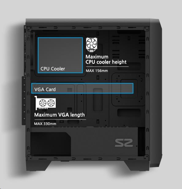 | Maximum CPU cooler height | 156 mm |