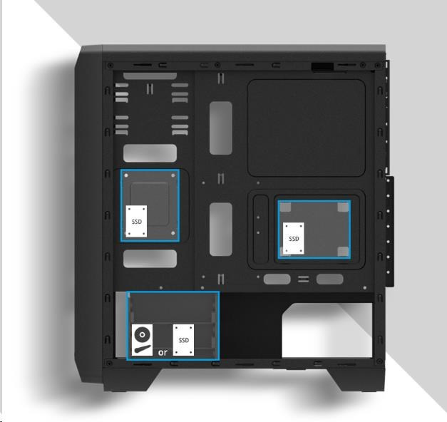 | Fan mount locations | Front: 120mm x 3 Top: 120mm x 2 Rear: 120mm x 1 Bottom: 120mm x 2 |