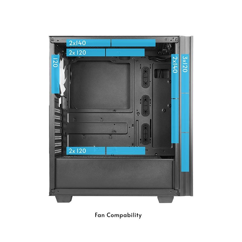 | Přední část | 3x 120 mm; 2x 140 mm |