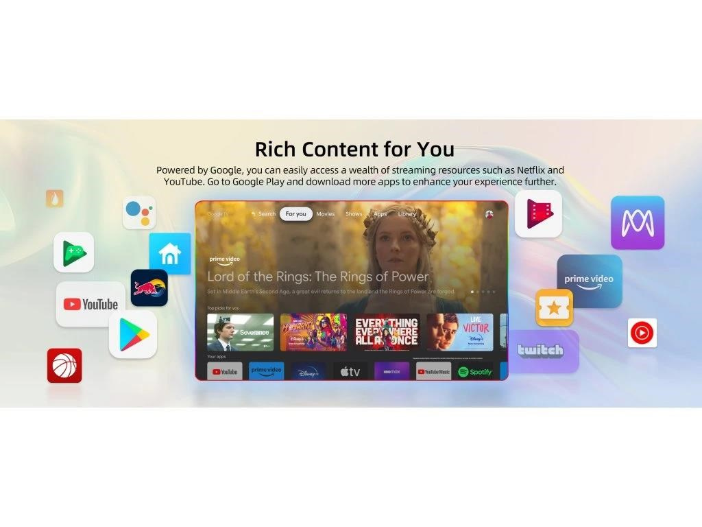 Aplikace | YouTube, Netflix, Prime Video, Google Play, O2 TV |
