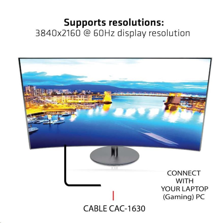Please use one of our HDMI™, USB Type C and/or Mini DisplayPort™ (Extension) cables to connect from the adapter to your devices: In case you need assistance to choose the correct cable, please visit our website www.club-3d.com or feel free to mail us at support@club-3d.com and it will be our pleasure to assist you.