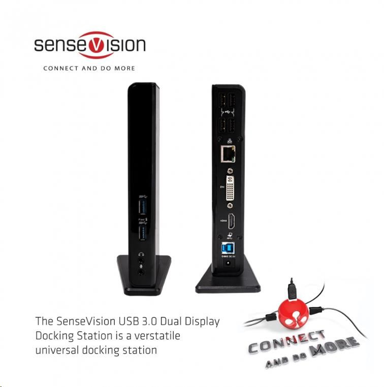 Dokovací stanice SenseVision USB 3.0 Dual Display je dokonalé univerzální zařízení, které vám umožní rozšířit výstupy vašeho notebooku nebo ultrabooku, takže jej můžete používat jako tradiční stolní počítač.