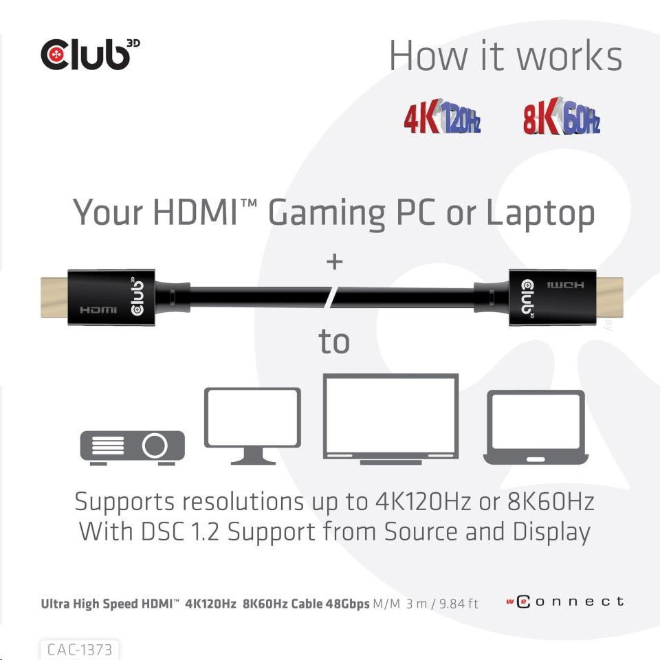 Club3D Kabel Ultra Rychlý HDMI™ Certifikovaný, 4K 120Hz, 8K60Hz, 48Gbps M/M, 3m, 28 AWG