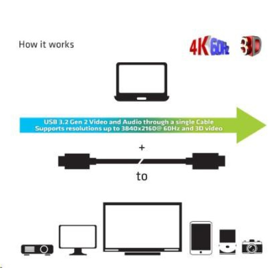 • USB 3.2 Gen 2 Video and Audio through a single Cable