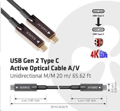 Club3D Kabel USB 3.2 typ C Gen2, aktivní, (M/M), 20m, optický, aktivní, unidirectional, A/V