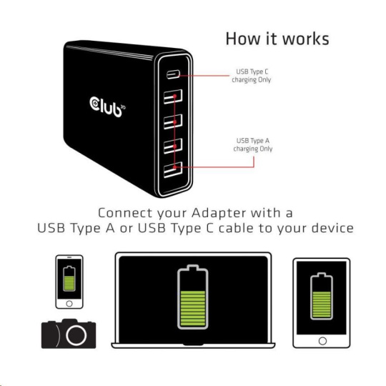 Club3D Nabíječka USB Typ A a C, 5 portů, 111 W
