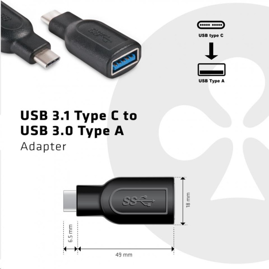 Adaptér Club 3D USB 3.1 type C to USB 3.0 umožňuje připojení vašich stávajících USB periferií, paměťových zařízení a dokovacích stanic s rozhraním USB typu A do notebooků, profesionálních tabletů a Ultrabooků s rozhraním USB 3.1 typu C. Adaptér je zpětně kompatibilní a podporuje také rozhraní USB 2.0. Specifikace USB 3.0 SuperSpeed zajišťuje přenos rychlosti 5 Gb/s pro rychlý přenos velkých souborů.