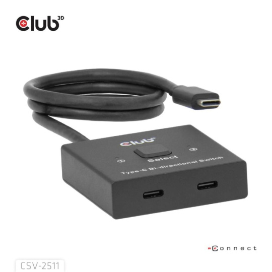 Plnohodnotný obousměrný přepínač Club 3D CSV-2511 může přepínat dva zdroje na jeden displej nebo jeden zdroj na jeden ze dvou displejů. Tento přepínač podporuje více rozlišení a až 8K nebo přenos dat max. 10 Gb/s nebo nabíjení PD3.0 max. 100 W PD. Může pracovat na všech hostitelských zařízeních USB-C®, kompatibilních se zařízeními Thunderbolt.