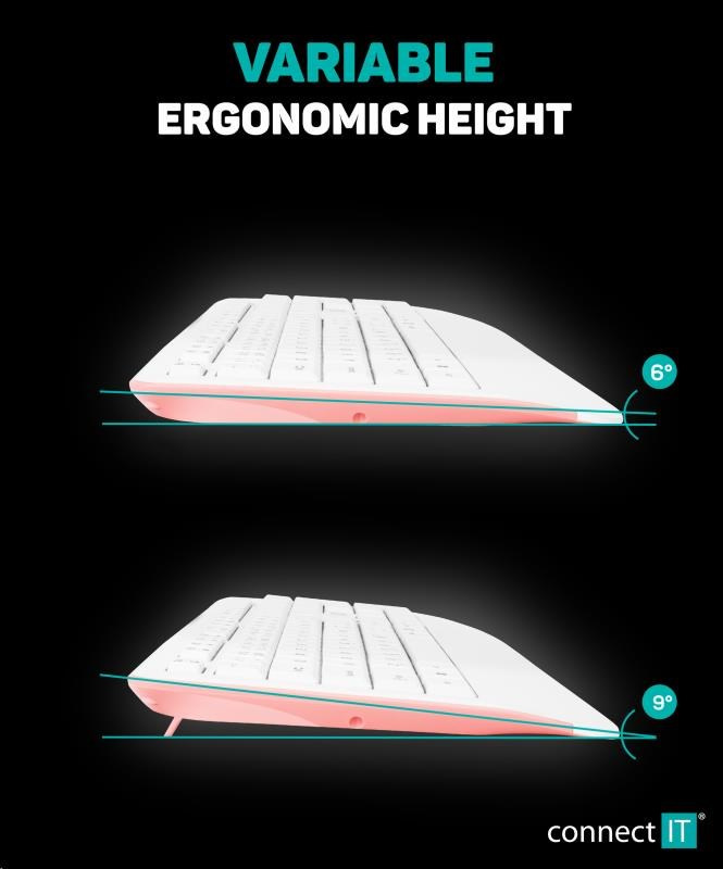 CONNECT IT Combo bezdrátová bílo-růžová klávesnice + myš, (+1x AAA +1x AA baterie zdarma), CZ + SK layout