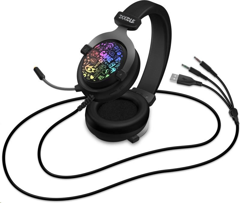CONNECT IT DOODLE RGB herní sluchátka s mikrofonem, 2xJack+USB, černá