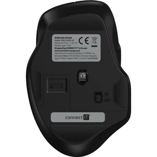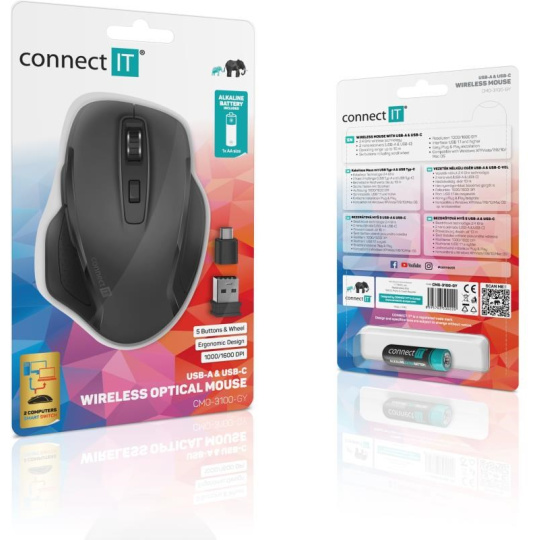 CONNECT IT Dual SmartSwitch bezdrátová myš, USB-A + C (+1x AA baterie zdarma), šedá