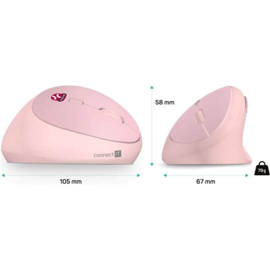 CONNECT IT FOR HEALTH LADIES PINK Bezdrátová vertikální myš, ergonomická, růžová
