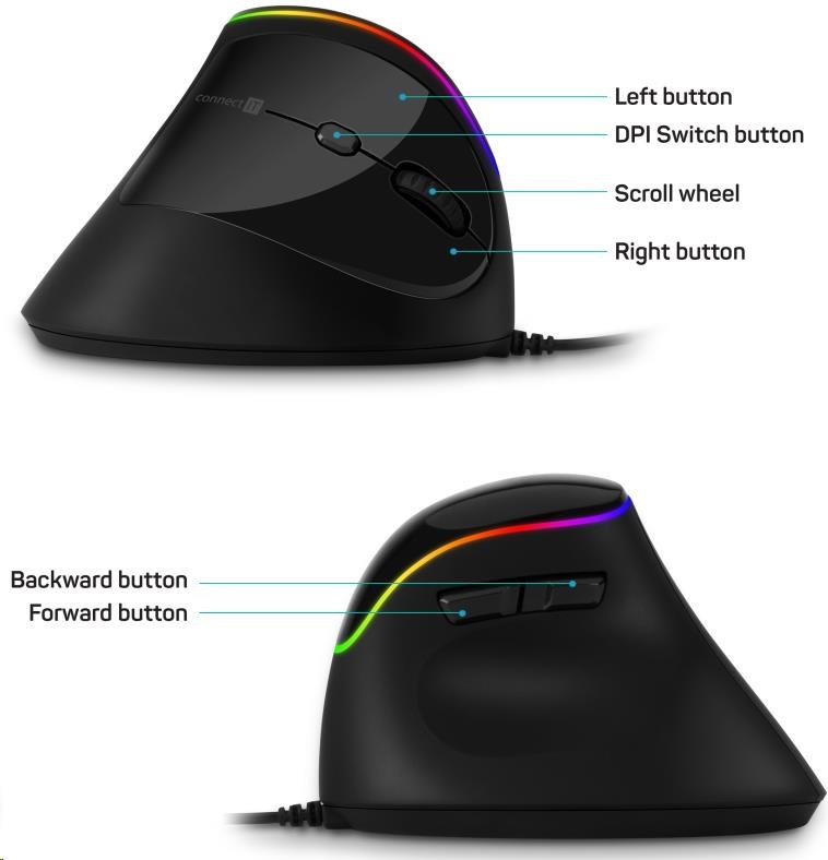 CONNECT IT GAME FOR HEALTH ergonomická vertikální myš, drátová, černá