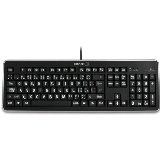 CONNECT IT Klávesnice CI-71 s LED podsvícením a VELKÝM fontem, USB