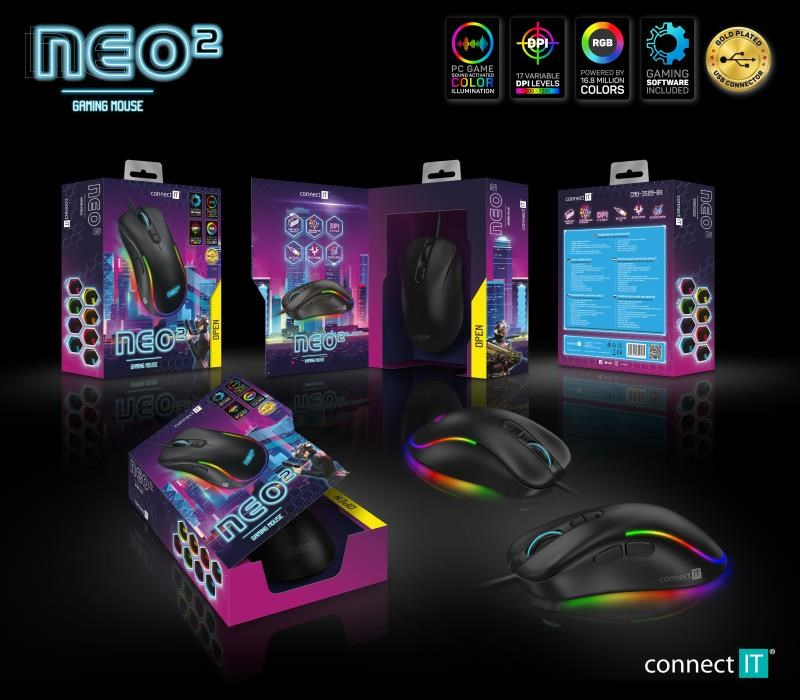 CONNECT IT NEO 2 herní myš+SW, 7200 DPI, černá