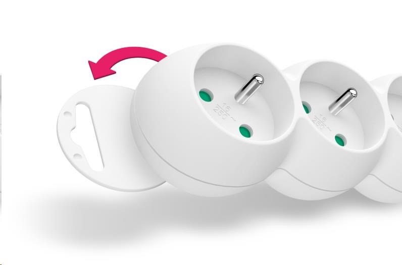 - Dětská ochrana všech zásuvek (zásuvky jsou přístupné pouze v případě zasunutí obou vidlic najednou, nelze tedy zasunout jednotlivě např.