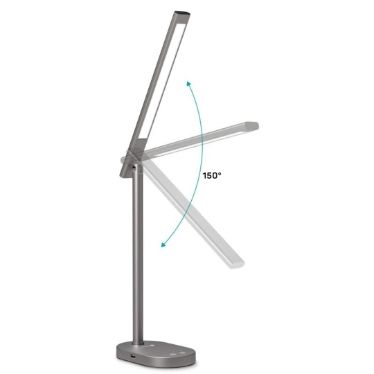 Díky sklopnému rameni nastavíte dokonalý úhel pro jakoukoliv práci. Lampička disponuje USB-A výstupem s výkonem 5 W a dvěma praktickými dotykovými spínači, které umožňují zapnout/vypnout lampu, nastavit 3 úrovně jasu světla nebo nastavit barevnou teplotu světla ve 3 různých úrovních (3000/4000/6500 K).
