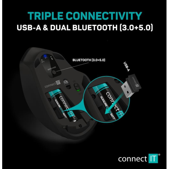 CONNECT IT Triple SmartSwitch bezdrátová myš, 2.4 GHz & BT, černá