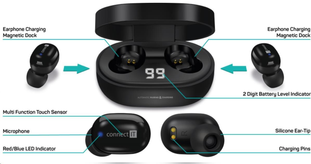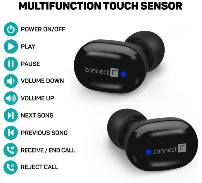 CONNECT IT True Wireless SensorTouch sluchátka do uší s mikrofonem, černá
