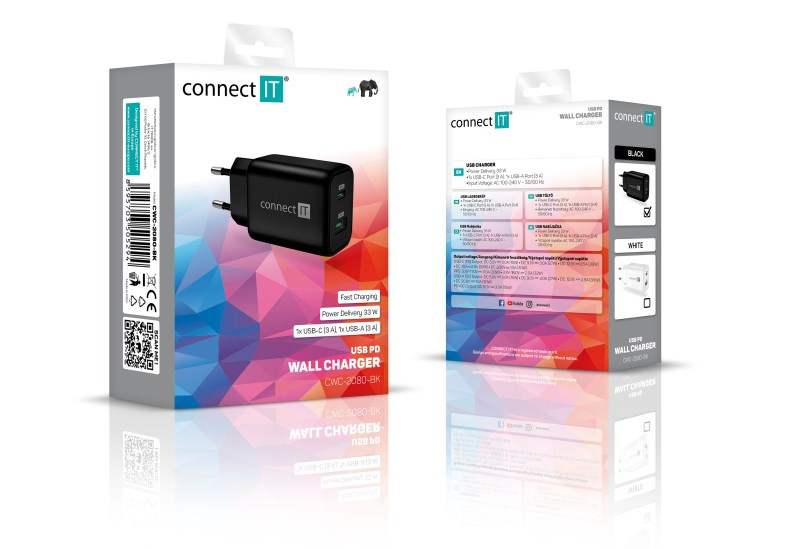 Cestovní USB nabíječka CONNECT IT "Wanderer2" s technologií GaN, určená pro napájení i nabíjení mobilních telefonů, tabletů, power bank, akčních kamer, elektronických čteček knih, MP3 a MP4 přehrávačů, herních konzolí a mnoha dalších přenosných zařízení doma, v kanceláři i na cestách. Technologie Power Delivery (PD) umožňuje rychlonabíjení o výkonu 33 W.