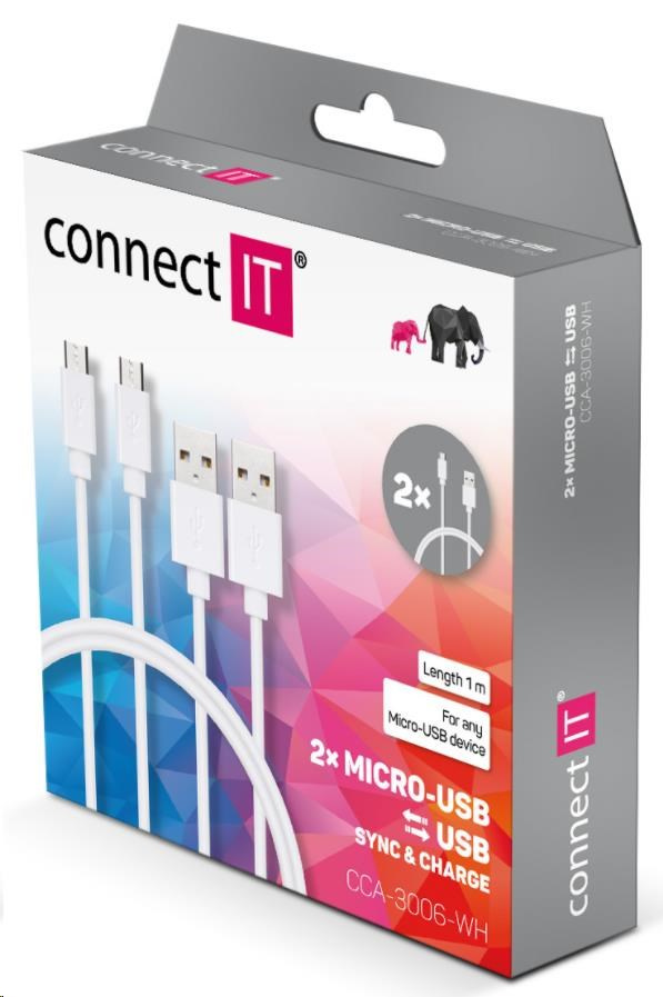 CONNECT IT Wirez Micro USB - USB, bílý, 1 m (2 ks v balení)