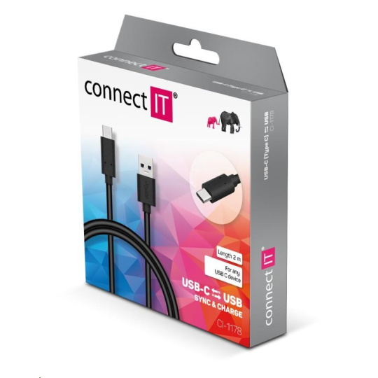 CONNECT IT Wirez USB-C (Type C) -> USB-A, USB 3.1 Gen 1, černá, 2 m