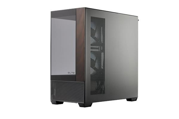 Model Elite 690 má čistý a moderní design a je vybaven dvěma panely z tvrzeného skla na přední a boční straně, které prezentují prémiové komponenty a osvětlení RGB. Přední panel kombinuje přírodní akcent s texturou dřeva se spodním sáním ze síťoviny, což přináší jak estetické teplo, tak efektivní proudění vzduchu. Díky rozsáhlému větrání na horní a spodní straně podporuje skříň univerzální konfigurace ventilátorů a chladičů, které umožňují výkonné vertikální chlazení. Ať už stavíte vysoce výkonnou předváděcí sestavu nebo stylovou stolní sestavu, Elite 690 poskytuje dokonalou rovnováhu mezi funkčností a formou.